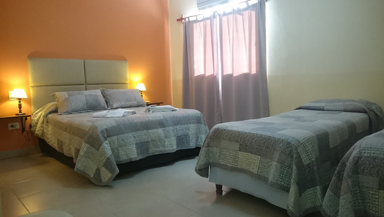 Habitaciones Cuádruples Consultas ENVIAR Servicios Habitaciones Habitaciones con baño privado Colchones sommier Aire acondicionado Split – Frio /Calor Placares Desayuno incluido Calefacción Tv LED 23″ con cable Amenities Servicio de Limpieza